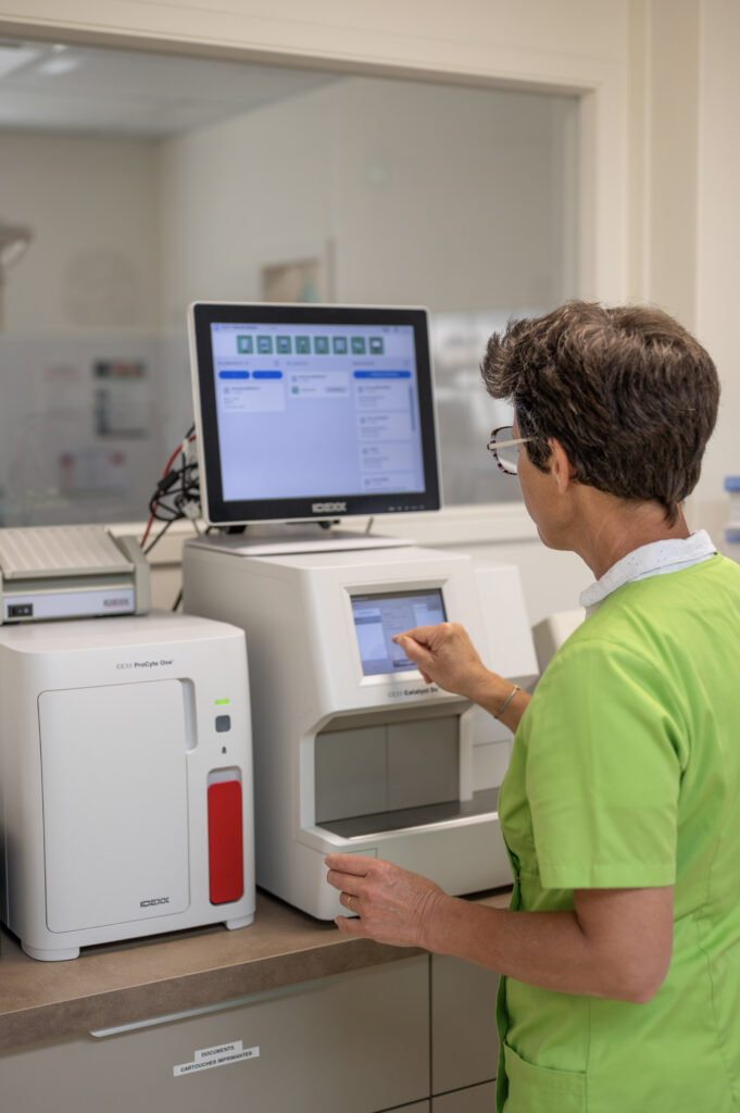 – Effectuées par nos soins avec le matériel suivant : Numération-Formule sanguine sur Procyte one Idexx, Biochimie sur Catalyst Idexx, Endocrinologie et Sérologie sur Snapshot Idexx et Idexx snap pro
